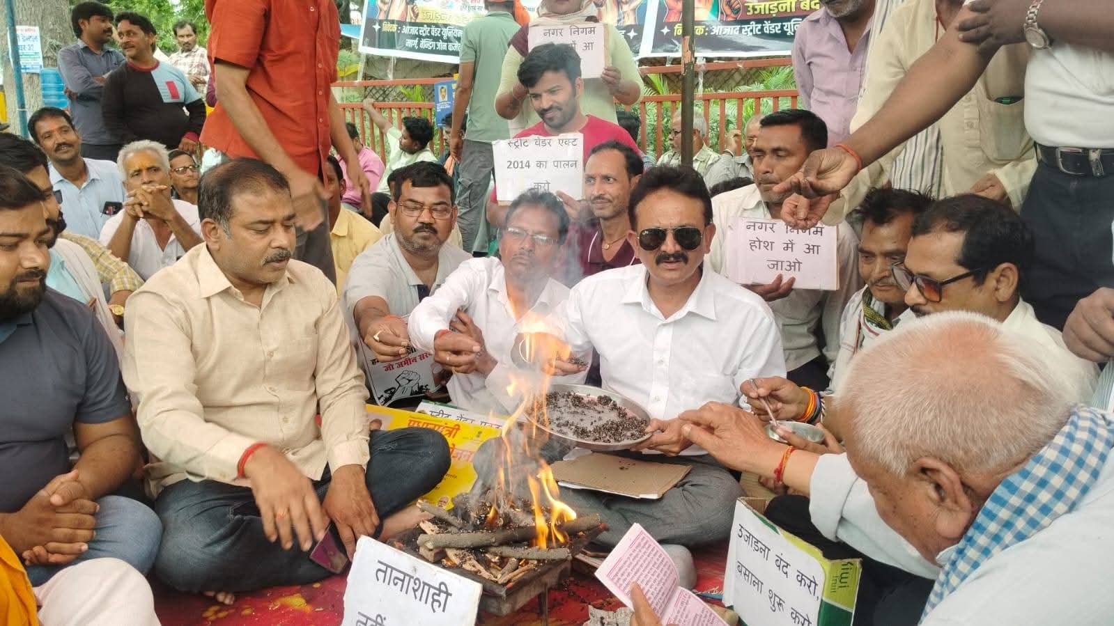 प्रयागराज आजाद स्ट्रीट वेंडर युनियन हाकर्स ज्वाइंट एक्शन कमेटी के तत्वाधान में एजी आफिस सरोजनी नायडू मार्ग के फुटपाथ दुकानदारो…